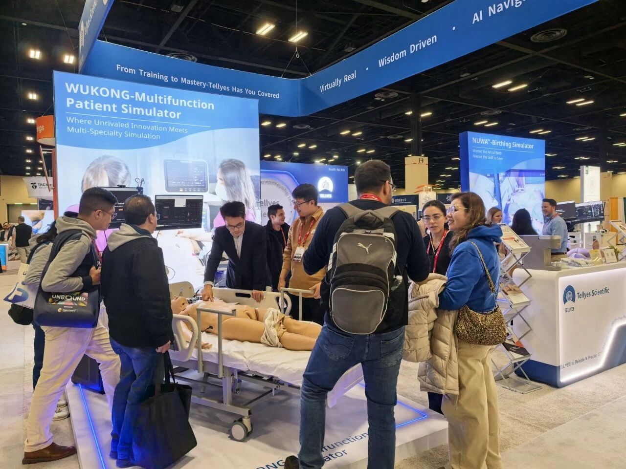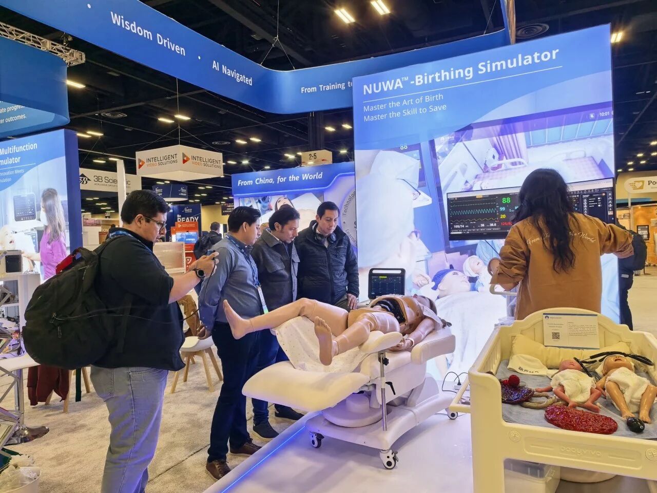 WUKONG-Multifunction Patient Simulator made his charming debut, capturing the attention of the entire hall and attracting a large number of visitors to gather and explore. Additionally, NUWA™-Birthing Simulator drew crowds with her highly precise simulation of the entire birthing process and dynamic feedback powered by physiological-driven algorithms.