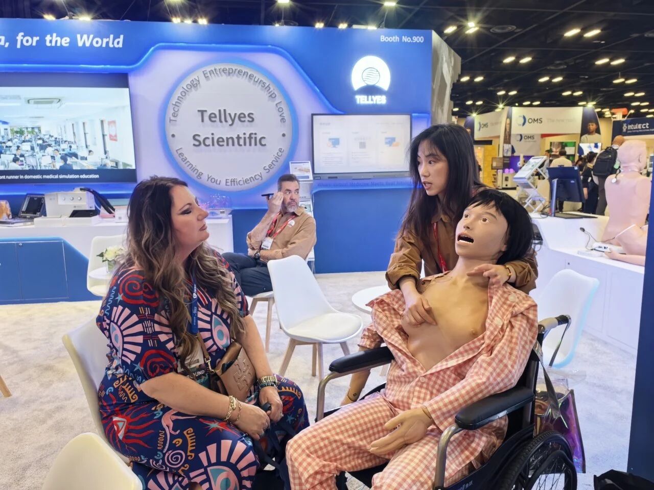 Today, our booth attracted hundreds of visitors from all over the world, who were deeply impressed by high-fidelity simulators such as NUWA™-Birthing Simulator, WUKONG-Multifunction Patient Simulator, and MARS. Many clients expressed varying levels of interest in collaboration, engaging in improvised business discussions and brainstorming sessions with Tellyes team.