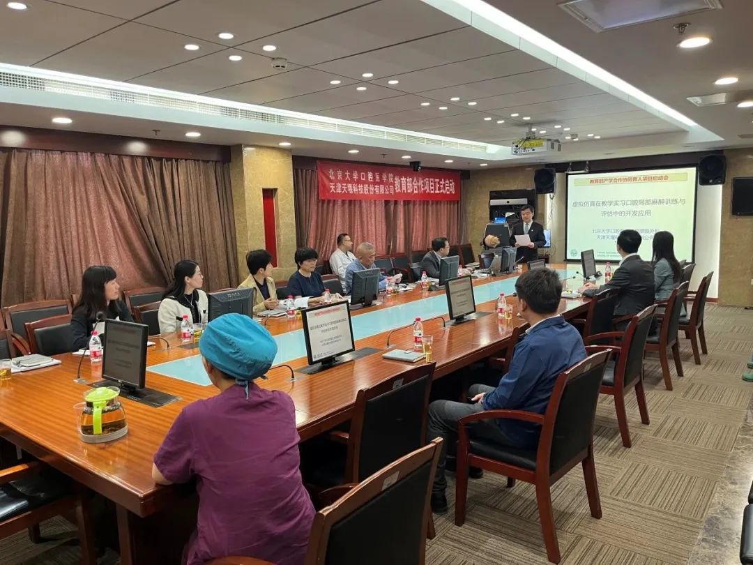 2023年4月24日,在这个春光明媚的日子里,北京大学口腔医院(北大口腔)与华体平台-华体(中国) (华体平台-华体(中国))召开“虚拟仿真在教学实习口腔局部麻醉训练与评估中的开发应用”项目启动会。北大口腔副院长李铁军、中华口腔医学会副秘书长刘宏伟、北大口腔教育处长董美丽、虚拟仿真教研室主任侯建霞、口腔颌面外科副主任贺洋、华体平台-华体(中国)总经理刘雁飞、华体平台-华体(中国)口腔事业部总经理景颖等人出席,在项目总负责人崔念晖主任主持下,双方展开了热烈而有成效的会晤,确定该项目正式启动。