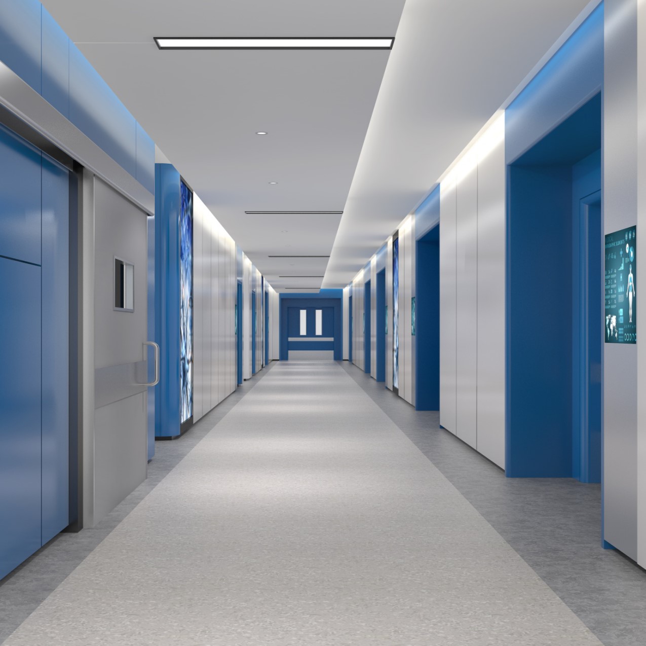 地下一层考试中心30站和中控室及配套用房,是目前单体量较大的智能化OSCE考试中心;地上一层设置应急处置中心、急救技能实训室、模拟ICU、观摩室、妇儿技能实训室和外科技能实训室。现实训中心已经正式运营并多次举办临床技能考核,其中圆满承接了2021年第十届全国大学生医学技能竞赛。